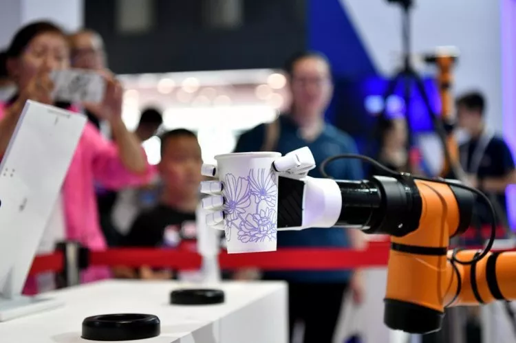 在机器人大会的博览会现场,各种各样的机器人争相斗艳,相比去年,今年的机器人产品更多的开始真正应用落地。现场,记者看到了猎豹移动开发的机械臂现场制作咖啡,这款机器人可以用手臂娴熟精准地调配出一杯新鲜咖啡,并拉出一朵漂亮的奶花。