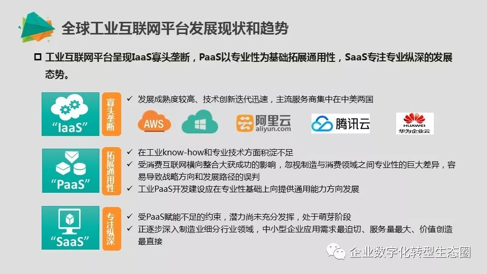 工业互联网平台呈现IaaS寡头垄断,PaaS以专业性为基础拓展通用性,SaaS专注专业纵深的发展态势;