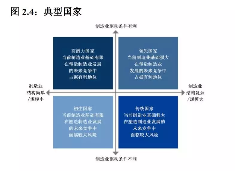 因此,报告中涉及到的分类和排名,都只是按照各国制造业结构和驱动因素加权得分分出来的(详细得分排名见文末)。