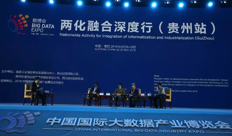 2018年5月26-29日,由国家发展和改革委员会、工业和信息化部、国家互联网信息办公室、贵州省人民政府联合主办的2018年中国国际大数据产业博览会(以下简称“2018数博会”)在贵阳如期召开。5月27日下午,由国家工业信息安全发展研究中心,腾讯控股有限公司、深圳华龙讯达、两化融合服务联盟主办的两化融合深度行(贵州站)在2018数博会上成功举办。本次活动以“推动互联网、大数据、人工智能和实体经济深度融合,加快企业数字化转型,培育发展新动能”为主题,贵州省人大常委会副主任何力,中国科学院院士、北京理工大学副校长梅宏,工业和信息化部信息化和软件服务业司副司长李冠宇,贵州省大数据发展管理局党组成员、副局长娄松等出席活动并作发言。国家烟草专卖局、浪潮、中钢集团、埃森哲、腾讯、美的等来自政府、企业代表近400人参加。