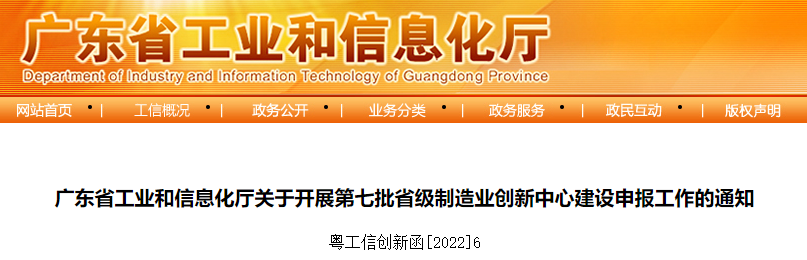 广东省工业和信息化厅关于开展第七批省级制造业创新中心建设申报工作的通知