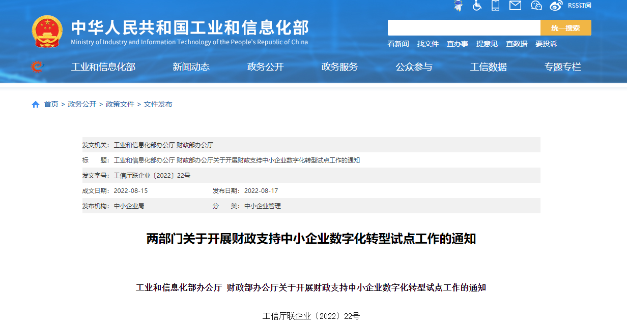 工信部、财政部部署开展财政支持中小企业数字化转型试点工作
