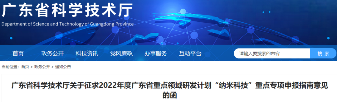 广东省科学技术厅关于征求2022年度广东省重点领域研发计划“纳米科技”重点专项申报指南意见的函