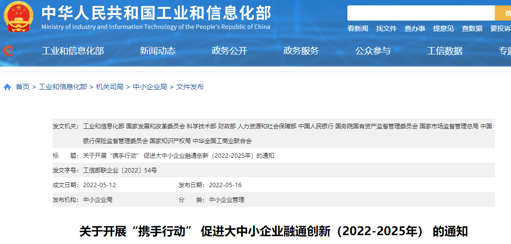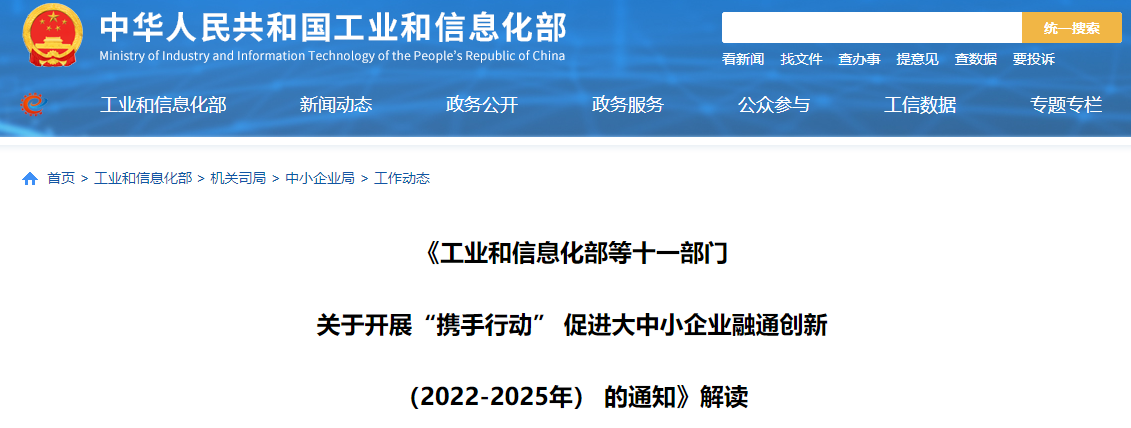【解读】关于开展“携手行动” 促进大中小企业融通创新(2022-2025年) 的通知
