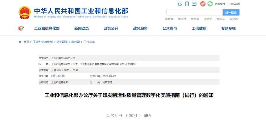 工信部印发《制造业质量管理数字化实施指南(试行)》(附解读)