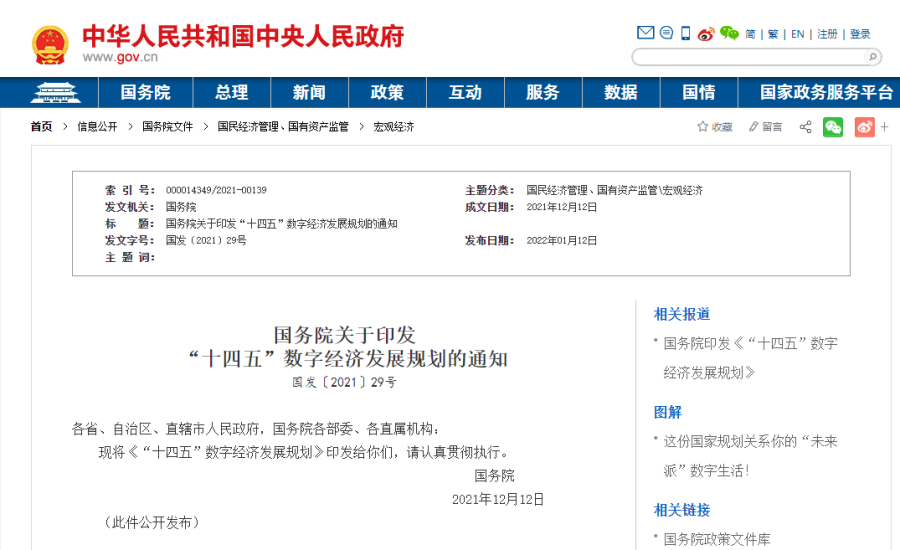 国家发展改革委负责同志就《“十四五”数字经济发展规划》答记者问