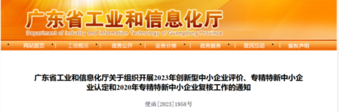 广东省工业和信息化厅关于组织开展2023年创新型中小企业评价、专精特新中小企业认定和2020年专精特新中小企业复核工作的通知