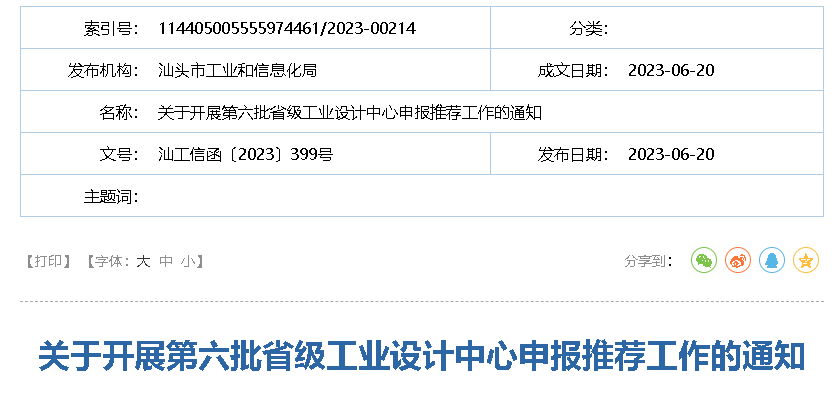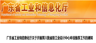 广东省工业和信息化厅关于开展第六批省级工业设计中心申报推荐工作的通知