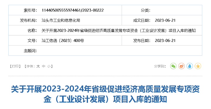 关于开展2023-2024年省级促进经济高质量发展专项资金(工业设计发展)项目入库的通知