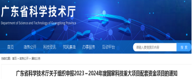 广东省科学技术厅关于组织申报2023~2024年度国家科技重大项目配套资金项目的通知