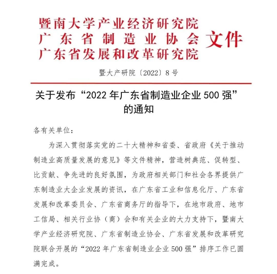 会员风采 | 会员单位万顺新材荣登“2022年广东省制造业企业500强”榜单