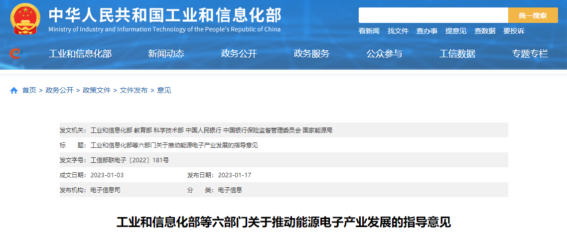 工业和信息化部等六部门关于推动能源电子产业发展的指导意见