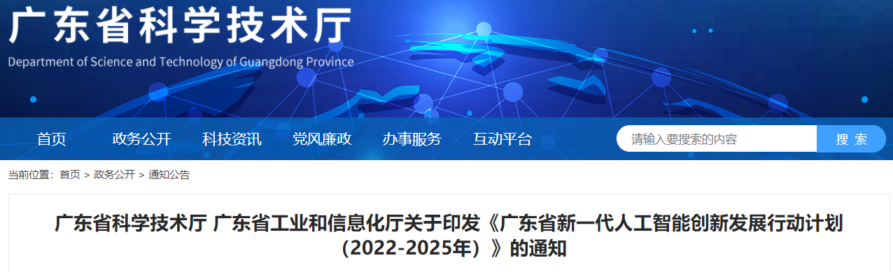 关于印发《广东省新一代人工智能创新发展行动计划(2022-2025年)》的通知