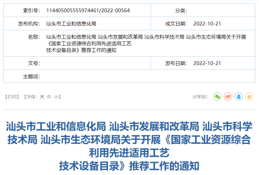 关于开展《国家工业资源综合利用先进适用工艺技术设备目录》推荐工作的通知