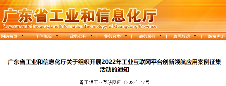 广东省工业和信息化厅关于组织开展2022年工业互联网平台创新领航应用案例征集活动的通知