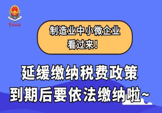 请注意!制造业中小微企业部分税费缓缴政策到期,自2022年8月起要依法缴纳了