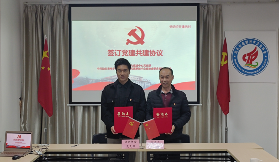 为深入学习贯彻新时代中国特色社会主义思想,全面贯彻新时代党的建设总要求和新时代党的组织路线,构建“资源共享、优势互补、互相促进、共同提高”的党建工作新格局,3月29日下午,中共汕头市电子信息软件行业和高新技术企业协会联合支部和中共汕头生产力促进中心支部在协会党建活动室开展党建共建交流活动,协会联合党支部书记陈岳强、汕头生产力促进中心党支部书记林锡广及双方党支部党员、入党积极分子参加交流。